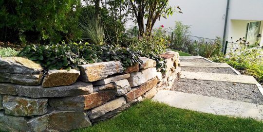 Johannes Braunschmid2019-07-11T14:02:33+02:00Höhenunterschiede können genutzt werden, um Gärten zu strukturieren. Mauern als Einfassungen von Pflanz- oder Kiesflächen erfüllen nicht nur diese Funktion, sondern stellen auch dekorative Elemente im Garten dar. Aus der gewonnen Höhe entstehen ebene nutzbare Flächen. Auf Gehwegen werden kleinere Höhensprünge durch weiträumige Stufen überwunden. So gehen die verschiedenen Niveaus fließend ineinander über. [...]